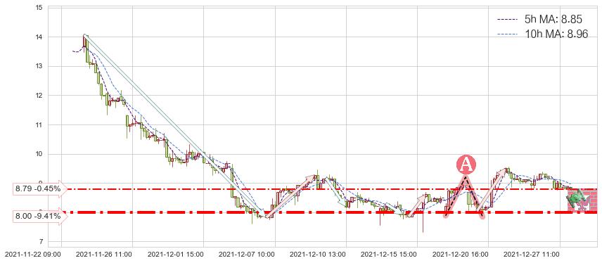 ♞ 5小时均线:8.85,10小时均线:8.96→ 快线<慢线