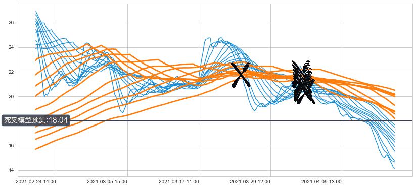 ➣ 90小时均线于(03-24 09:00: 21.71)形成【死叉】基于【死叉历史模型】预测死叉后最低波谷价格: 18.46, 死叉后最低价格13.88,已经下跌超出预测最低波谷价格, 预期反弹