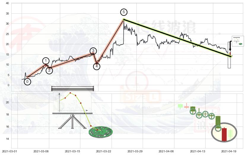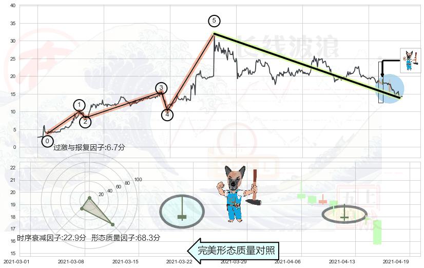 从2021-03-25 09:00至2021-04-19 14:00,共包含103个小时,阶段股价下跌-22.72%,阶段股价变动位移路程比: 1 : 7