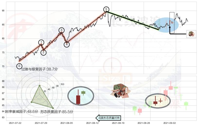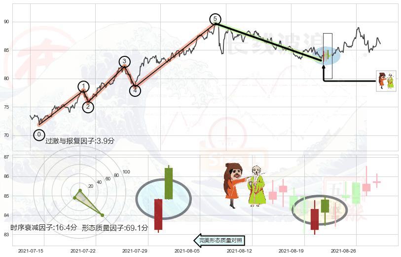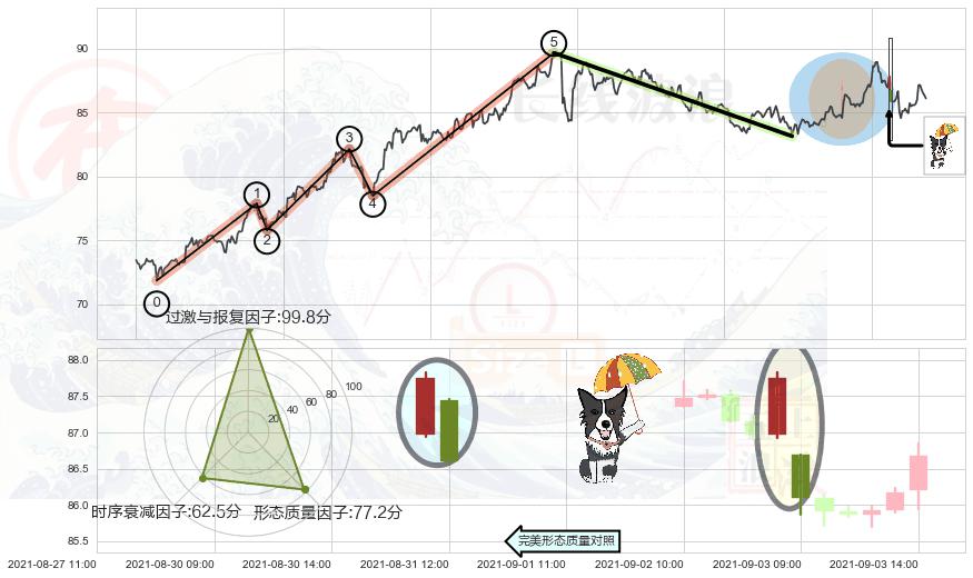 ➢ 🕰 价格走势在2021-08-27 00:00:00至2021-08-30 00:00:00期间形成顶部尽头线(下山虎),残存影响值:-3.98