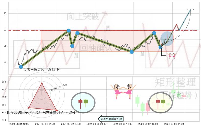 ➢ 【仅预测突破】最后价格:86.12与预测突破价格:89.68→【空间中等】后续最小【整理】第一目标价格→(09-22:12: 96.20 )