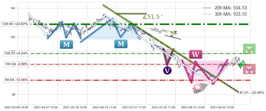 ♘ 阻力价格位108.33,可信任强度48.53%,距离最后交易2021-09-09 14:00形成的收盘价格103.93相差 +4.24%