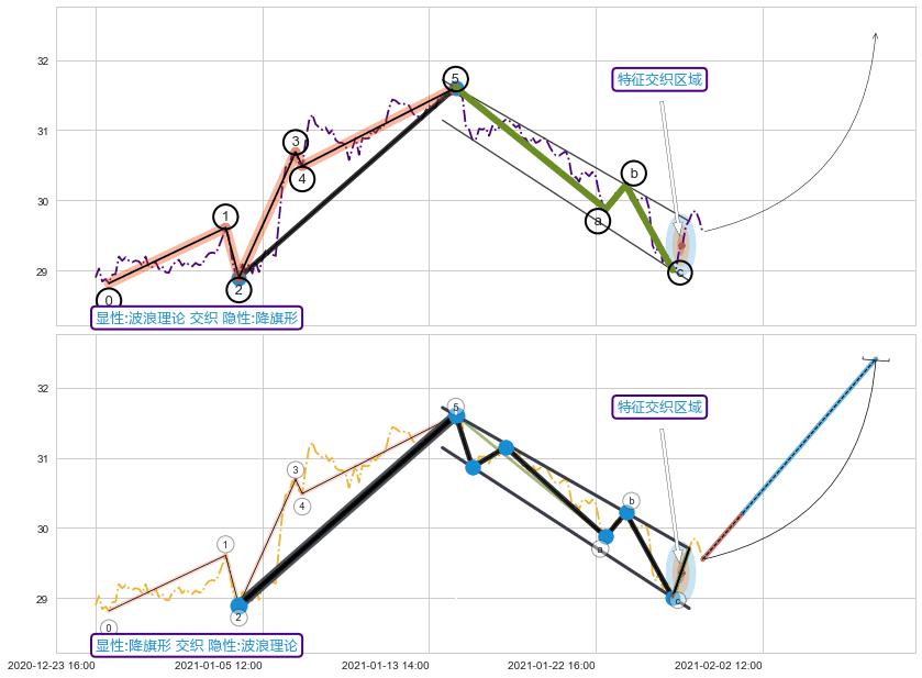 ➢ 波浪理论与降旗形信号事件周期长度级别相同,同周期信号事件