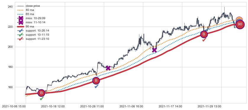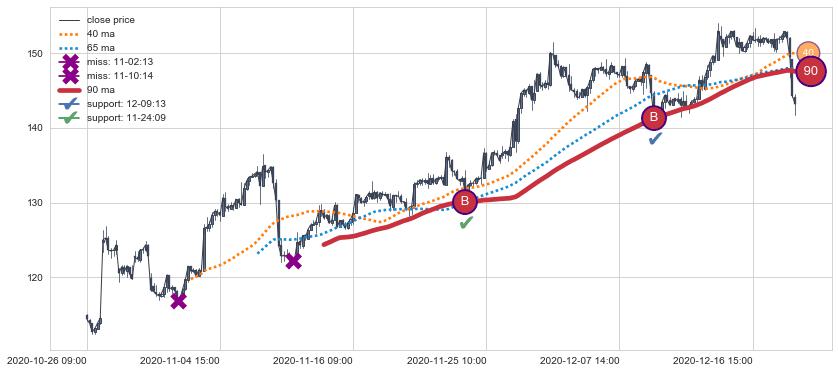 ➢ 最优均线组合共正确确认支撑阻力信号10处,正确确认率 66.67%