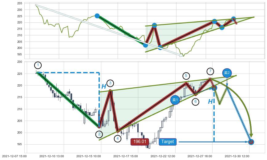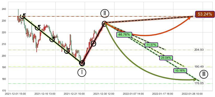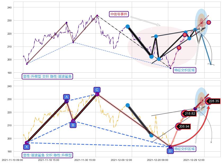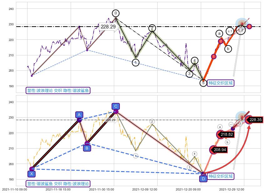 ➣ D点拟合预测价格234.70,距离最后交易收盘价格222.78相差 +5.35%