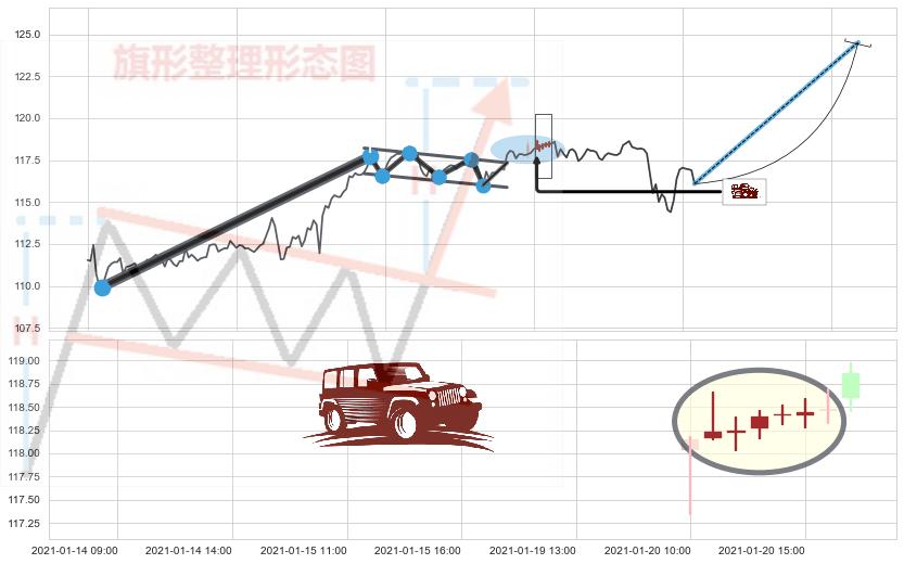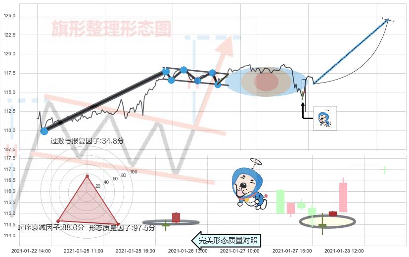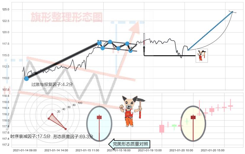 ➢ 【买1】: 激进型 买点 →(01-19:09: 117.34 )形成突破降⚑旗形【整理】形态