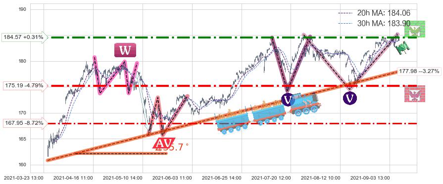 ♘ 阻力价格位184.57,可信任强度74.80%,距离最后交易2021-09-09 14:00形成的收盘价格184.00相差 +0.31%