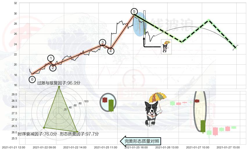 从2021-01-25 10:00至2021-01-28 16:00,共包含31个小时,阶段股价下跌-14.54%,阶段股价变动位移路程比: 1 : 2