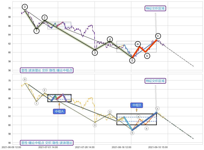 ➢ 波浪理论与缠论中枢点信号事件周期长度级别相同,同周期信号事件