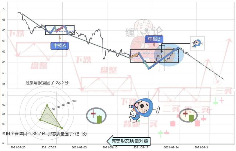➢ 下降三部曲(降势三鹤) 🔜 缠论中枢点破位中枢B支撑下拉 综合量化分数:43.55 【偏空】