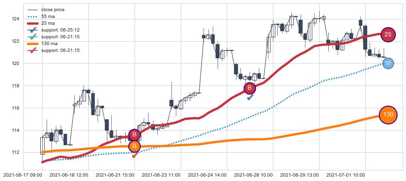 📝 多条均线形成死叉后走势最低价格达到: 93.15