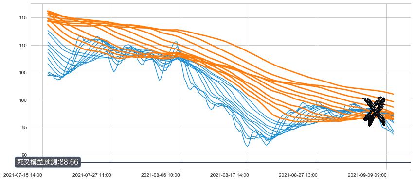 📉 多条均线基于【死叉历史模型】预测最低波谷价格的平均值: 88.66