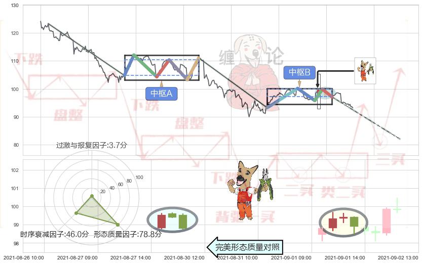 ➢ 缠论中枢点:下降缠中枢B破位后距离1买距离较远,随后猜想后续持续下跌(趋势跟踪)
