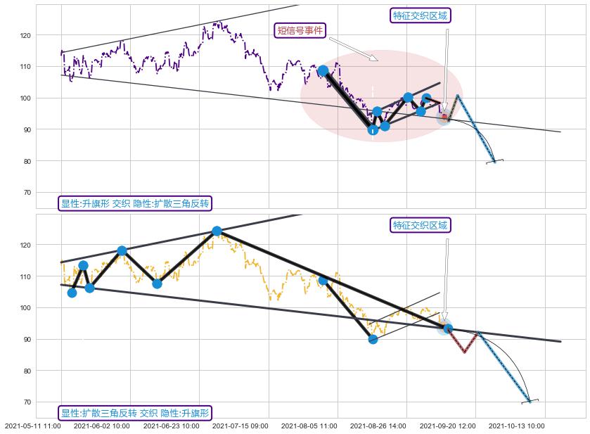 ➢ 升旗形属【短级别信号事件】扩散三角反转属【长级别信号事件】长短周期组合信号事件, 短长事件长度比31.14%