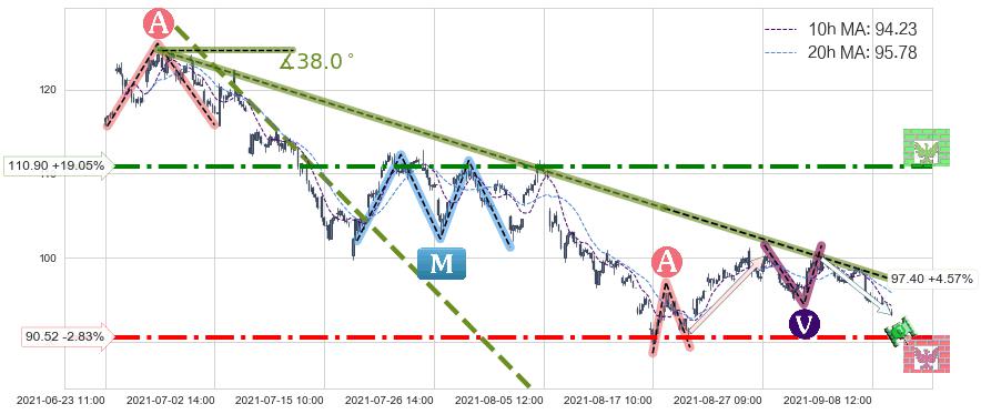 ➢ 预测:2021-09-14 12:00,【小幅反弹】稳定目前下跌趋势的前提下,预测价格:96.10