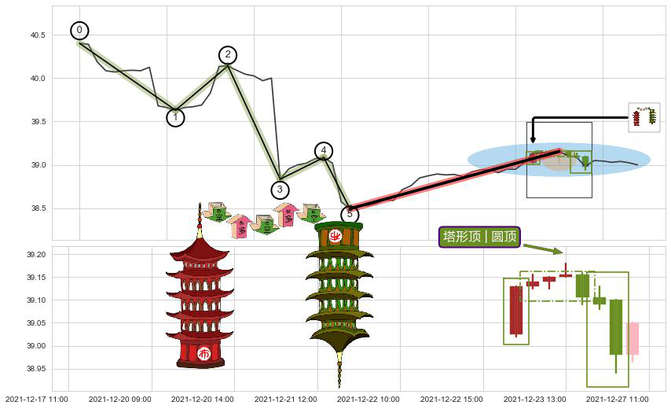 ➢ 🕰 价格走势在2021-12-23 10:00:00至2021-12-27 09:00:00期间形成塔形顶 | 圆顶,残存影响值:-9.29