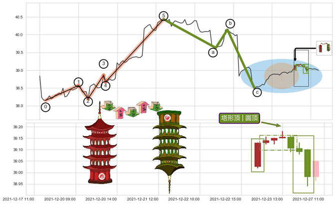 ➢ 塔形顶 | 圆顶 🔜 波浪理论c点反弹终止反转下跌 综合量化分数:39.98 【偏空】