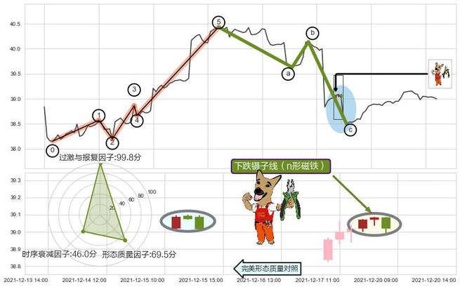 ➢ 🕰 价格走势在2021-12-17 13:00:00至2021-12-17 15:00:00期间形成下跌镊子线(n形磁铁),残存影响值:-2.34
