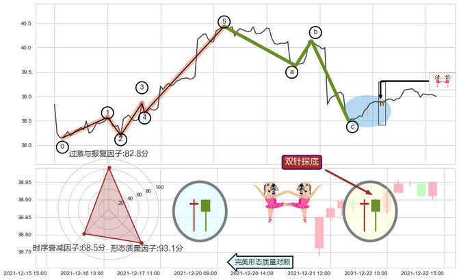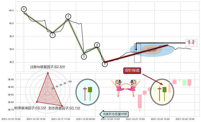 ➢ 🕰 价格走势在2021-12-21 15:00:00至2021-12-22 09:00:00期间形成双针探底,残存影响值:5.92