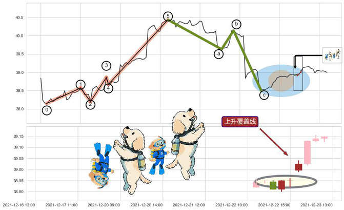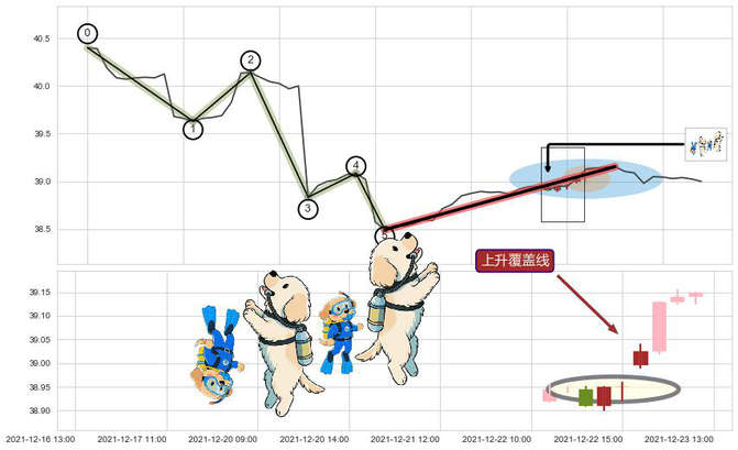 ➢ 🕰 价格走势在2021-12-22 13:00:00至2021-12-23 09:00:00期间形成上升覆盖线,残存影响值:8.56