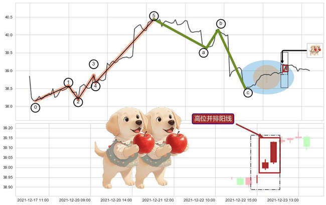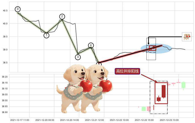 ➢ 🕰 价格走势在2021-12-22 15:00:00至2021-12-23 10:00:00期间形成高位并排阳线,残存影响值:7.95