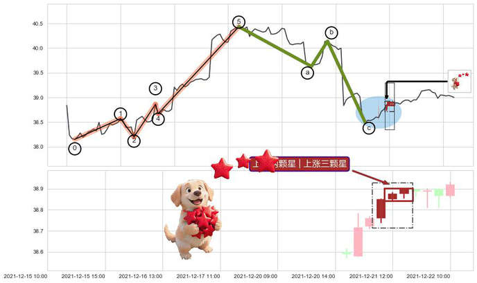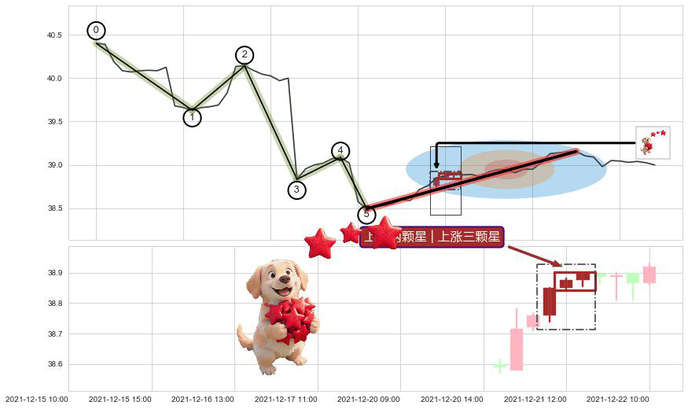 ➢ 🕰 价格走势在2021-12-21 11:00:00至2021-12-21 13:00:00期间形成上涨两颗星 | 上涨三颗星,残存影响值:7.03