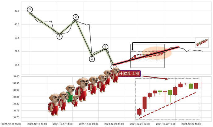 ➣ 冉冉上升|稳步上涨:冉冉上升|稳步上涨 信号为看多信号,后市看涨, 阳线数量居多,可有阴线