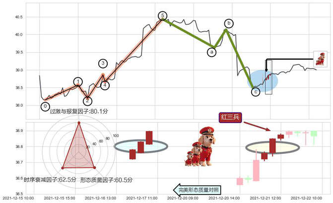➢ 🕰 价格走势在2021-12-21 10:00:00至2021-12-21 12:00:00期间形成红三兵,残存影响值:5.63
