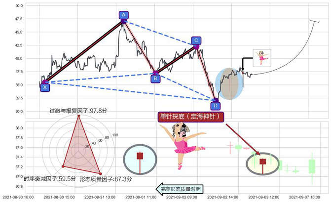 ➢ 🕰 价格走势在2021-09-03 10:00:00至2021-09-03 10:00:00期间形成单针探底(定海神针),残存影响值:6.33