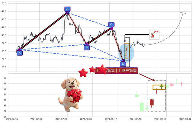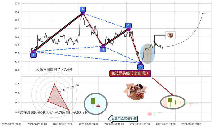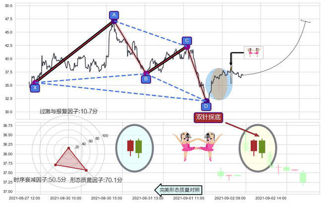 ➢ 双针探底 🔜 谐波蝴蝶d拐点上涨支撑 综合量化分数:50.48 【中性】