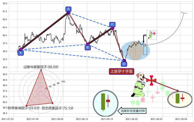 ➢ 🕰 价格走势在2021-09-08 00:00:00至2021-09-09 00:00:00期间形成上涨孕十字星,残存影响值:7.96