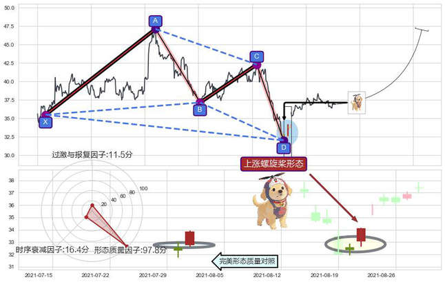 ➢ 🕰 价格走势在2021-08-20 00:00:00至2021-08-23 00:00:00期间形成上涨螺旋桨形态,残存影响值:2.22