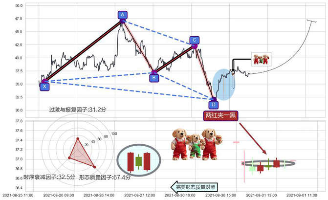 ➢ 两红夹一黑 🔜 谐波蝴蝶d拐点上涨支撑 综合量化分数:54.75 【偏多】