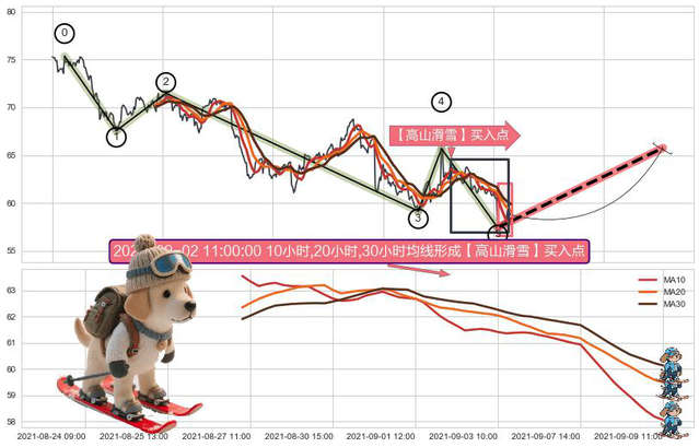 ➣ 🕰 价格走势在2021-09-08 10:00:00至2021-09-09 14:00:00期间形成【高山滑雪】买入点,残存影响值:22.35