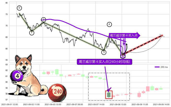 ➣ 🕰 价格走势在2021-09-03 13:00:00至2021-09-09 10:00:00期间形成葛兰威尔第④买入点,残存影响值:1.82