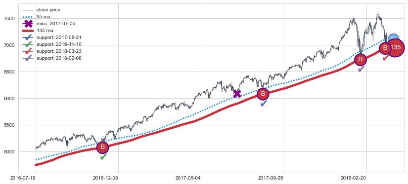 ➢ 最优均线组合共正确确认支撑阻力信号9处,正确确认率 69.23%