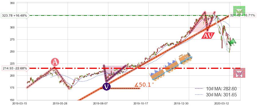 ➣ 【已确认突破】最后价格:277.97与最小【反转】第一目标价格→(2020-04-02: 225.79 )相较: 下跌空间【较大】