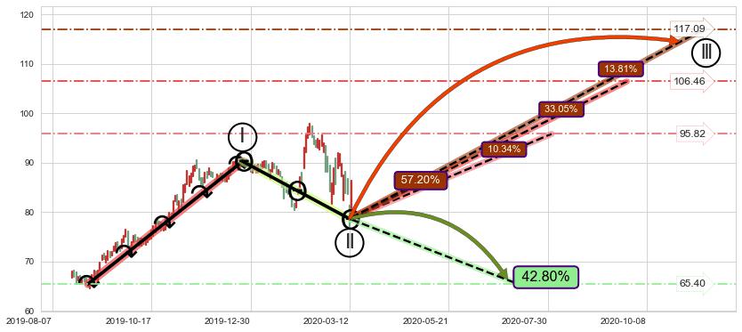 ➢ 大趋势走坏(跌破5浪起点位置)概率42.80%