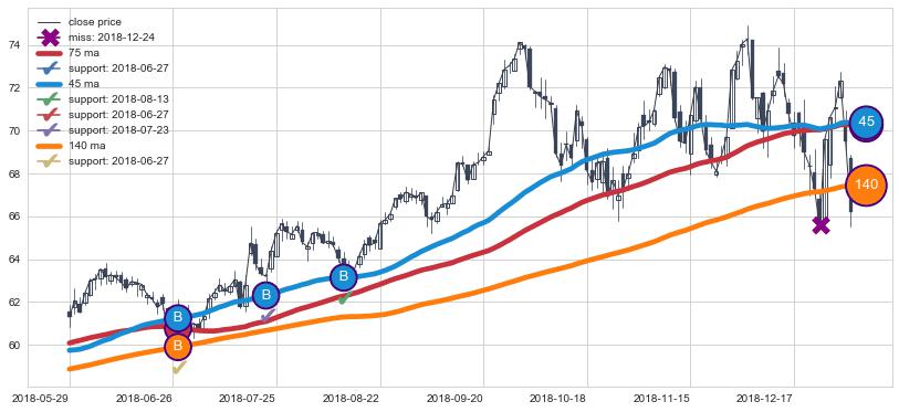 📝 多条均线形成死叉后走势最低价格达到: 74.74