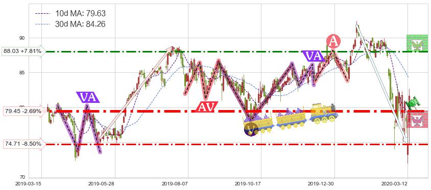 ♘ 支撑价格位79.45,可信任强度90.30%,距离最后交易2020-03-13形成的收盘价格81.65相差 -2.69%