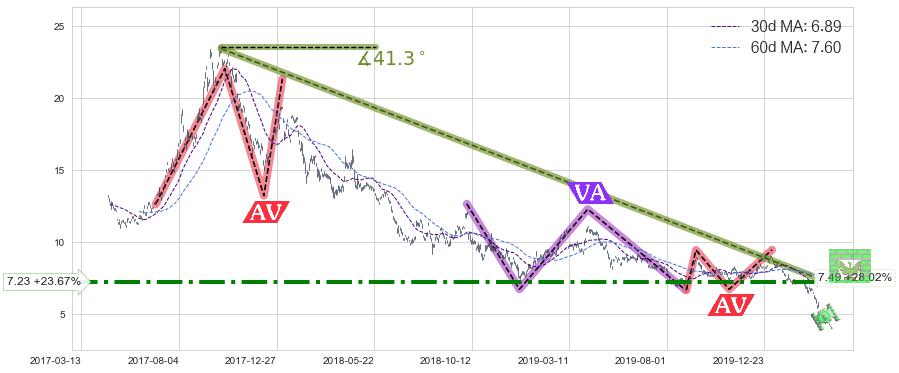 ♘ 阻力价格位7.23,可信任强度76.92%,距离最后交易2020-03-13形成的收盘价格5.85相差 +23.67%