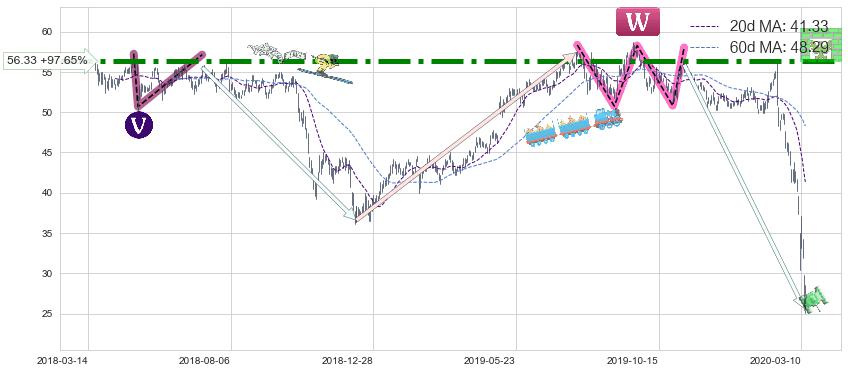 ♘ 阻力价格位56.33,可信任强度97.83%,距离最后交易2020-03-13形成的收盘价格28.50相差 +97.65%