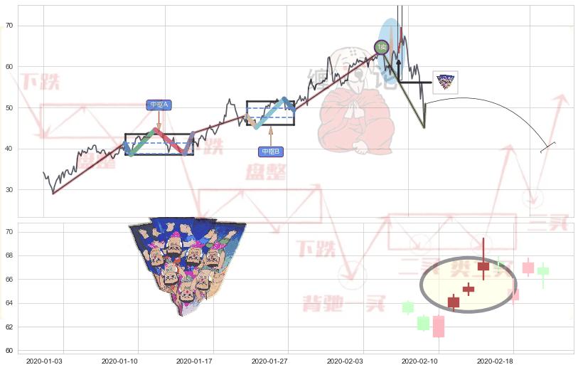 ➢ 收盘价(2020-02-19: 67.41 )→回踩→第一根k线低点(2020-02-14: 66.55 )