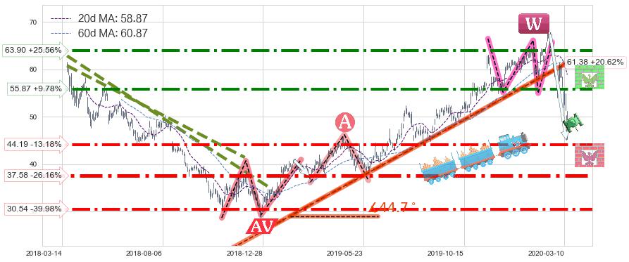 ♘ 支撑价格位44.19,可信任强度74.36%,距离最后交易2020-03-13形成的收盘价格50.89相差 -13.18%