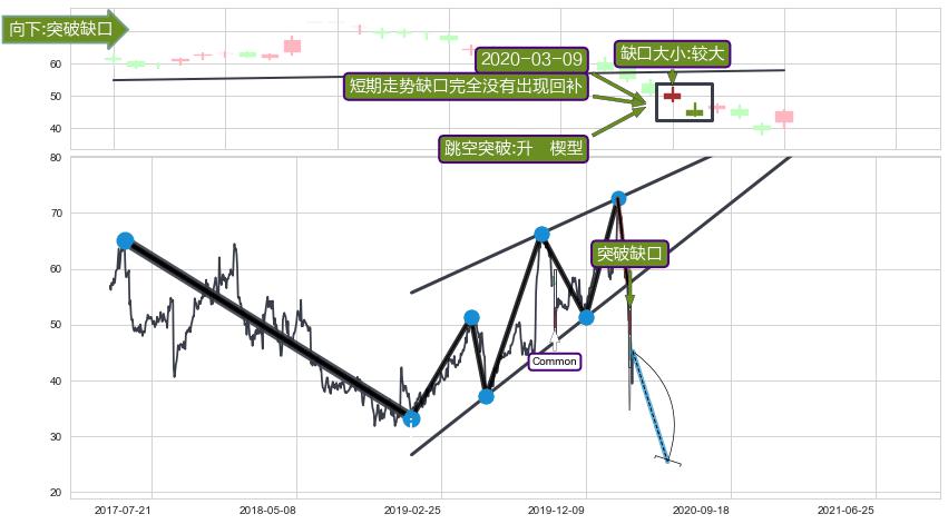 ➢ 2020-03-09形成:向下跳空【突破】缺口
