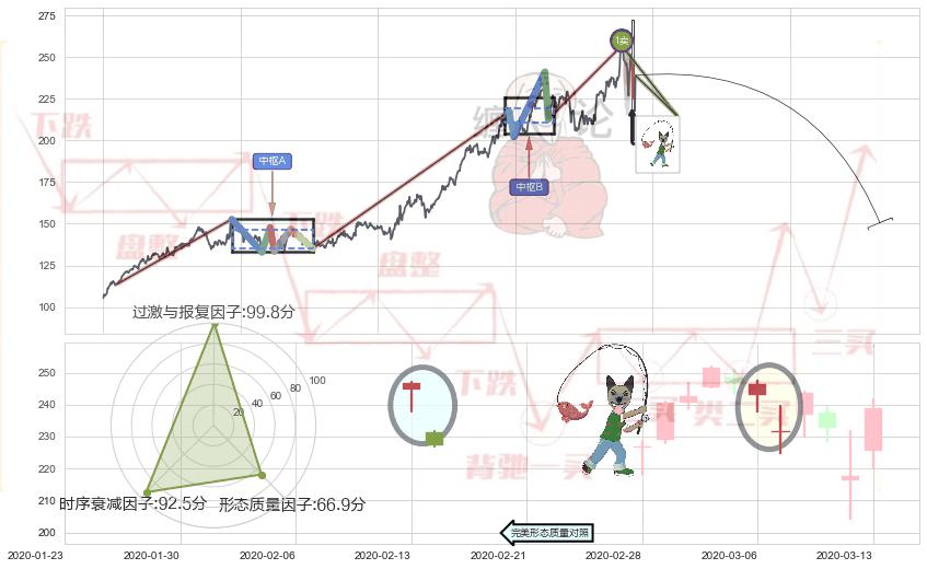 ➢ 🕰 价格走势在2020-03-06至2020-03-09期间形成吊颈线(上吊线),残存影响值:-4.34
