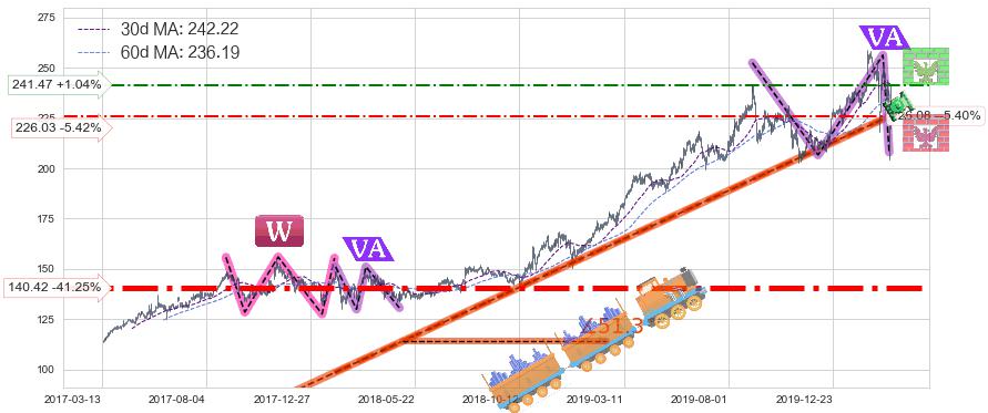 ♘ 支撑价格位226.03,可信任强度44.47%,距离最后交易2020-03-13形成的收盘价格238.99相差 -5.42%