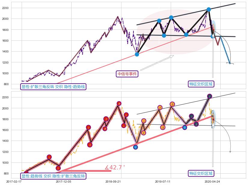 ➢ 扩散三角反转属【中级别信号事件】趋势线属【长级别信号事件】中长周期组合信号事件,中长事件长度比41.10%