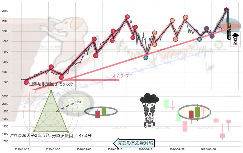从2017-03-21至2020-03-11,共包含748个交易日,阶段股价上涨89.28%,阶段股价变动位移路程比: 1 : 10,上涨趋势角度: 42.7