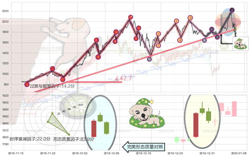 ➢ 2017-03-21-2020-03-11上升趋势存在反转[风险],虽然原上升趋势的支撑位(1853.66)已破位,但其支撑效果尚存,原上升趋势角度: 42.7˚